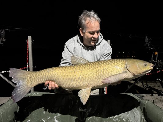 Másfél óra elteltével megszólalt az egyik jelző – egy 12 kiló feletti amúr látogatta meg a csalinkat!