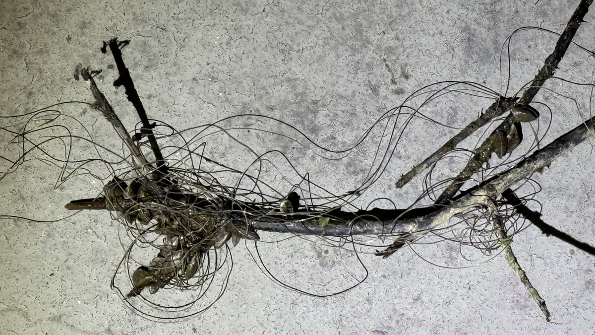 Bár csak 5-6 kilós volt, a fárasztás igazi kalandot hozott, főleg miután az akadóba futott. Akkor értettem meg igazán, miért kötelező a kagylóálló előtét… a zsinóron faágak és kagylók tömege lógott.
