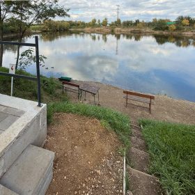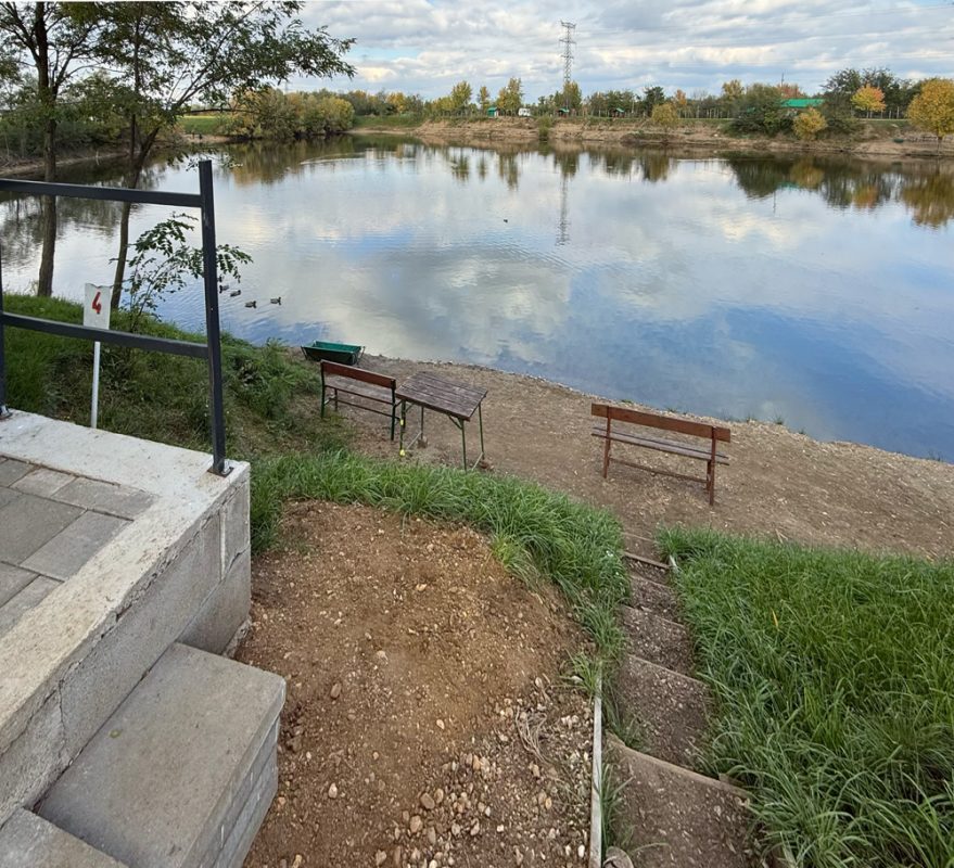 A horgászhely egy meredek partoldal alatti kis teraszon kapott helyet, ahol két horgász kényelmesen elfér, miközben közvetlenül a vízparton hódolhat a szenvedélyének.