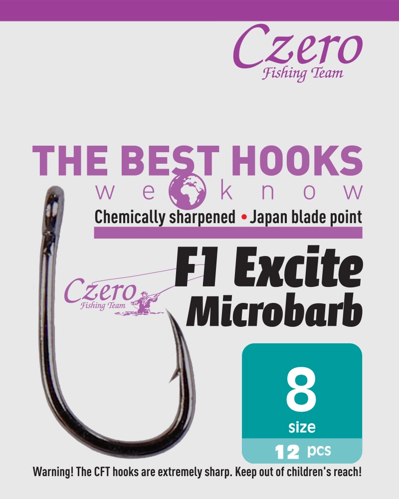 A Czero F1 Excite Microbarb egy mikroszakállas pontyozó horog, amely az erős tartás és a könnyebb horogszabadítás ideális kombinációját nyújtja. A finom mikroszakáll csökkenti a halak sérülését, miközben a horog mégis stabilan tart fárasztás közben.